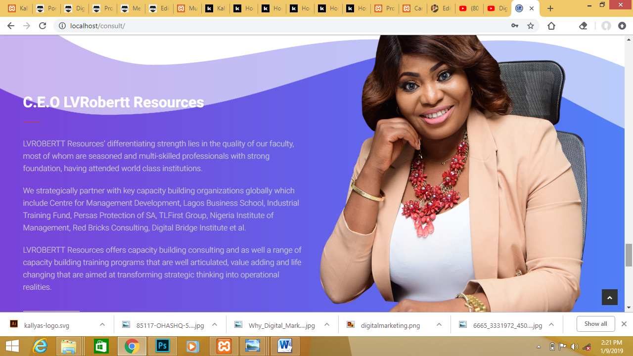 Lvrobertts Resources is a training and consulting firm based in Abuja, Nigeria. This site was created by Digital Clan and it has the following features;